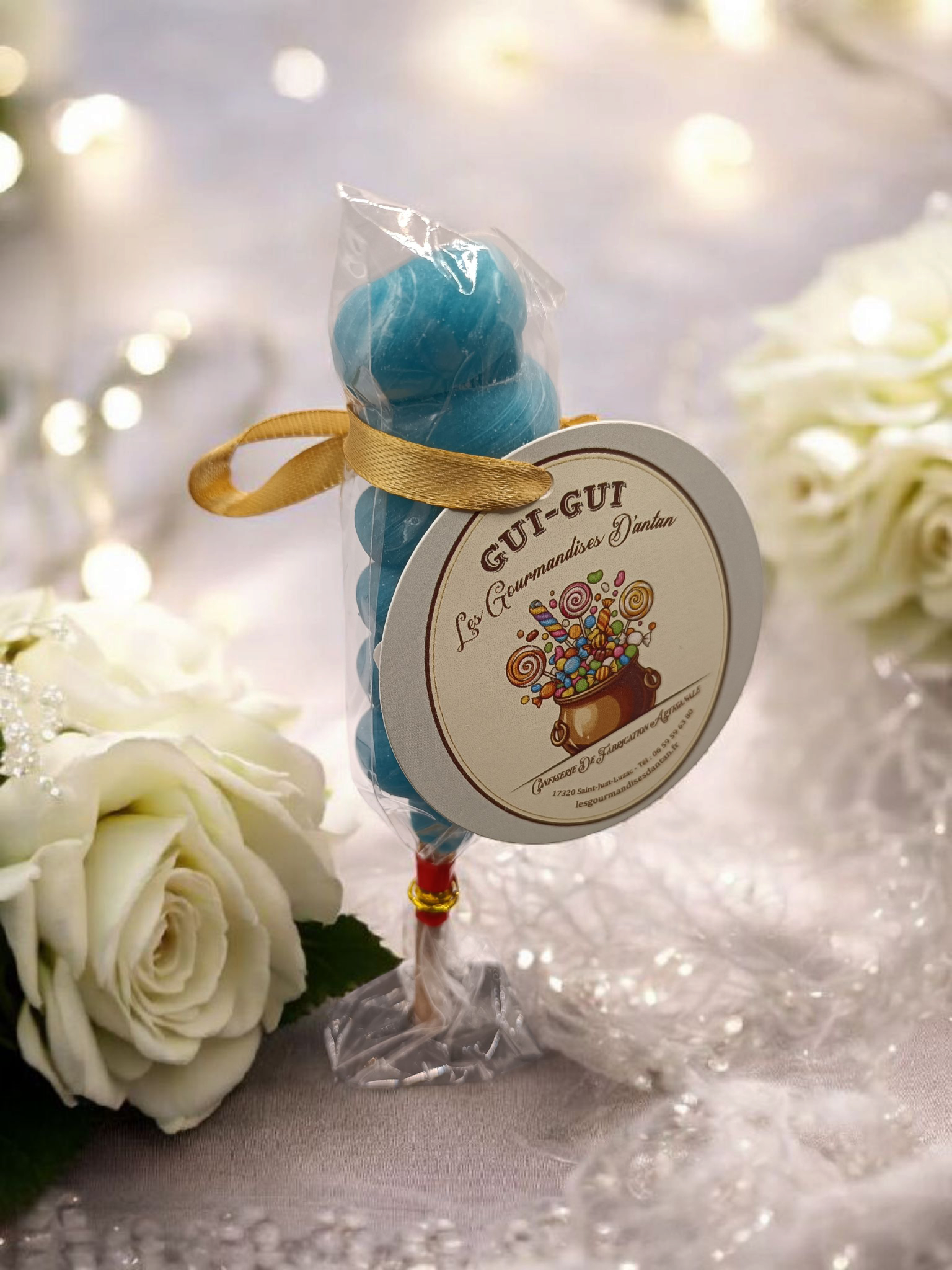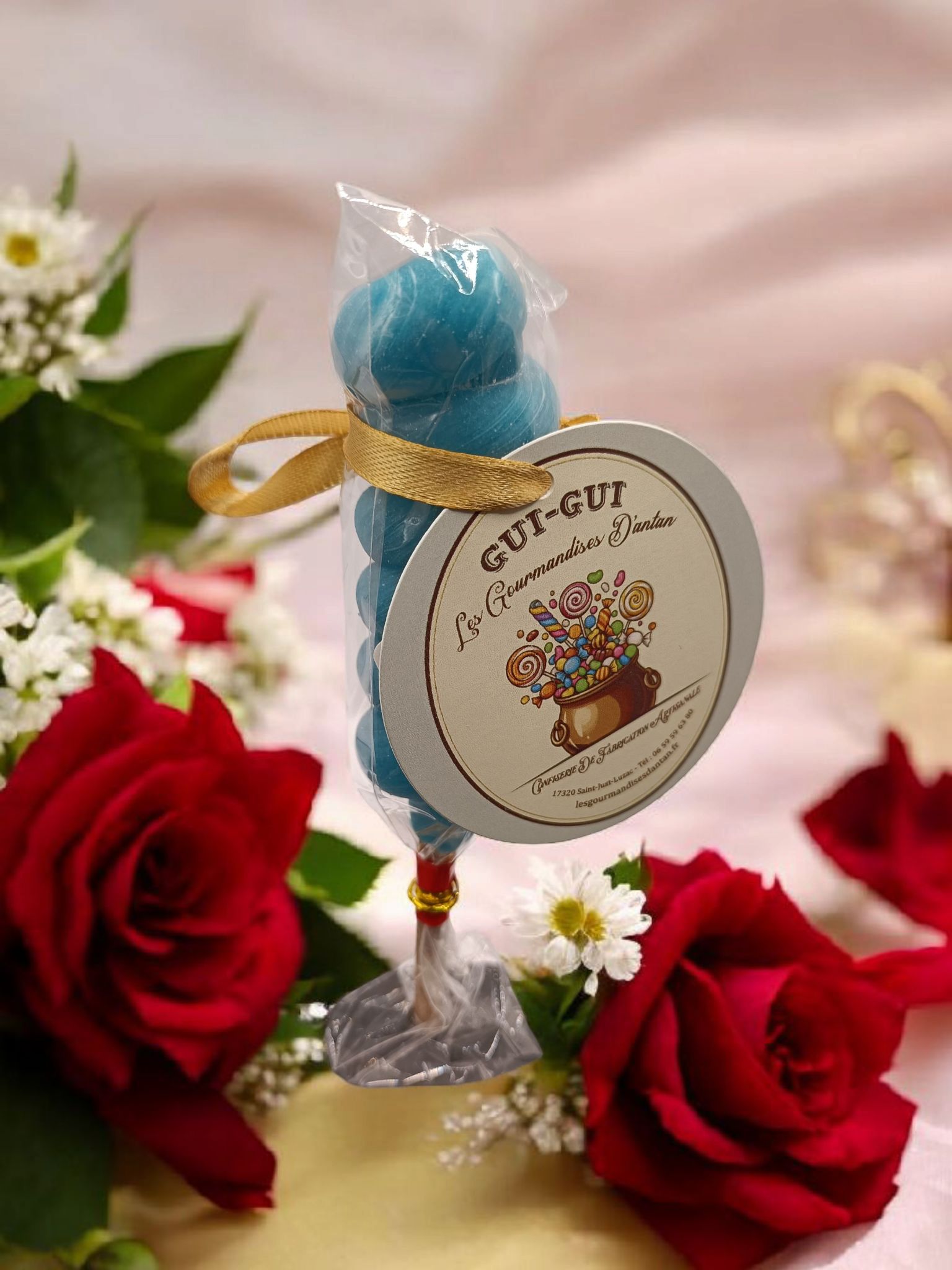 Craquez pour la surprise gourmande de cette sucette torsadée mystère. Sa saveur douce et intrigante évoque les bonbons maison et les plaisirs sucrés d’autrefois. Une gourmandise rétro qui mêle douceur, couleur et authenticité pour un vrai retour aux saveurs d’antan.
