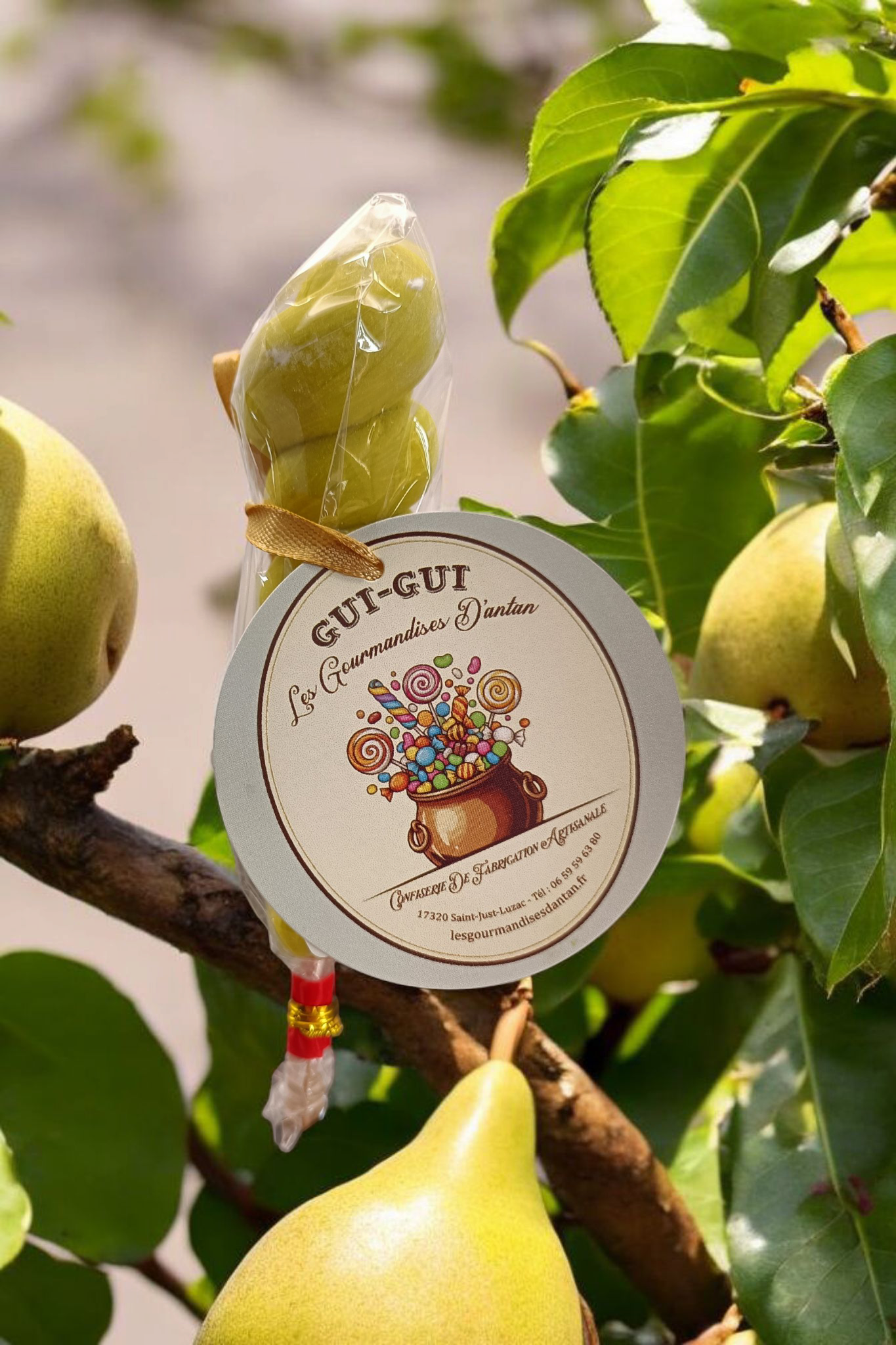 Laissez-vous séduire par cette sucette torsadée à la saveur poire, douce, fruitée et délicatement sucrée. Son goût frais et fondant rappelle les bonbons d’antan et les plaisirs simples des fêtes foraines.
